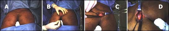 The area is cleaned and dried, and antibiotic ointment is applied to the incision and covered with gauze and a compressive garment or taping. The patient is returned to a supine position for initial recovery, after which he may lie in the position he feels is most comfortable.