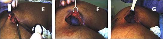 This suturing procedure brings the skin down to the sacrum, resulting in a deep buttock crease that hides the incision, reduces the tension on the closure, and prevents an unnatural-appearing “tenting” across the final closure.