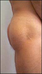 Fat transfer was an established technique for filling moderate contour deformities, so I offered this procedure to attempt some enlargement and shaping of his otherwise normal-appearing buttocks. He accepted, and the result was modest but acceptable to him. After several additional attempts, fat transfer proved to yield unreliable results as compared, for example, with augmentation of the breast, pectoral, chin, and other areas of the body using silicone implants.