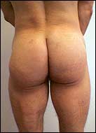 | This 34-year-old bodybuilder is shown before and 6 months after gluteal augmentation. | |